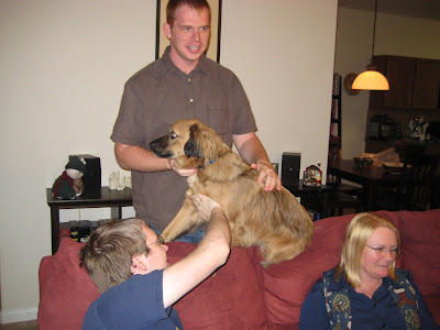 After their walk, they were able to play with Aaron in my parents' backyard.