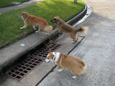 Sadie and Perry were going on a walk and were able to re-unite with one of their dog friends, Newton. Since Newton is a lot older than Sadie and Perry, and Sadie and Perry are very energetic, he was relieved when their leashes were re-attached.