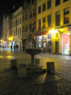On the way to the Grand Place, there is a fountain in the center of the street. It has three different levels for drinking - one for humans, one for horses and one for dogs.