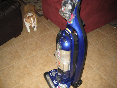 This morning Sadie fought with the evil vacuum cleaner.