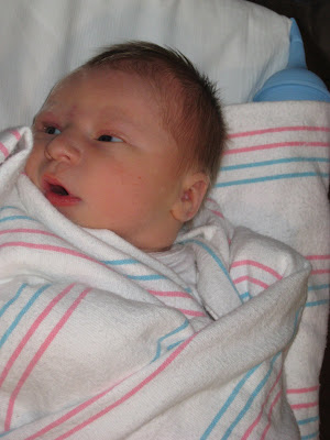 Josh and I got little sleep while at the hospital. Both nights Ben kept us up - something we'll likely need to adjust to in the future! Here's a picture of him all cleaned up after his first bath: