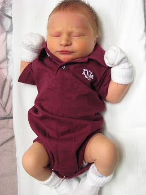 Ben went home from the hospital on Friday - here he is in one of his Aggie outfits: