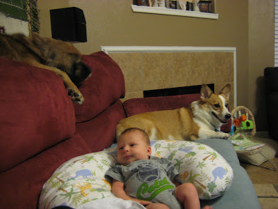Today Ben is three weeks old. The dogs continue to adjust. They've always been very cautious and gentle around him, but try to protect him from others.