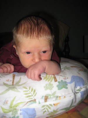 On Friday night, we were in San Antonio for the weekend. Everyone else was at a football game while Ben and I stayed home. He was finally awake for a tummy time!
