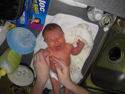After coming home from the hospital on Friday, Ben experienced a few firsts in the next week, including his first sponge bath at home: